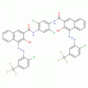Англиски алијас: Пигмент црвено 242; PR242; Сандорин Скарлет 4РФ; 2-Нафталенокарбоксамид, N, N '- (2,5-дихлоро-1,4-фенилен) бис- [4 - [[2-хлоро-5- (трифлуорометил) фенил] азо] -3-хидрокси-3-хидрокси -; (4Z, 4'E) -N, N '- (2,5-дихлоробензен-1,4-дил) бис (4 - {[2- хлоро-5- (трифлуорометил) фенил] хидразоно} -3-оксо- 3,4-дихидронафтален-2-карбоксамид); - 4- [2-хлоро-5- (трифлуорометил) фенил] азо-N- [2,5-дихлоро-4 - [[4- [2-хлоро-5- (трифлуорометил) фенил] азо-3-хидрокси-нафталин -2-карбонил] амино] фенил] -3-хидрокси-нафтален-2-карбоксамид; N, N '- (2,5-дихлоро-1,4-фенилен) бис [4 - [[2-хлоро-5- (трифлуорометил) фенил] азо] -3-хидроксинафталин-2-карбоксамид] Број на CAS: 52238 -92-3